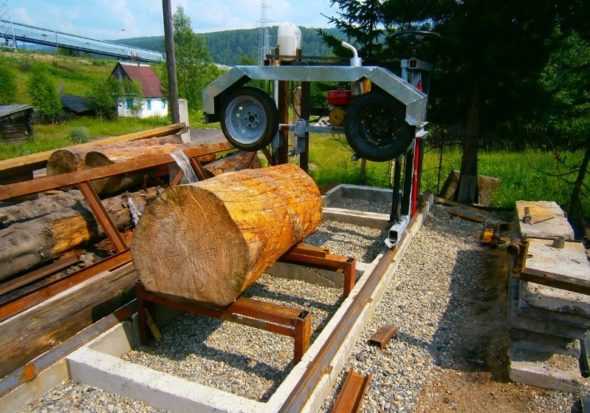 - Отсутствует необходимость установки специального фундамента в основании ленточной пилорамы.