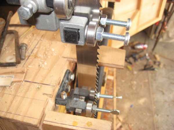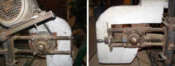 Ведомым шкивом является правый, он натягивается, автоматически, пружиной. В данном случае была использована пружина, демонтированная с мотоцикла «КаСика». А ведущий, левый шкив фиксируется жестко, но его можно сместить, если поменяется размер ленточной пилы.