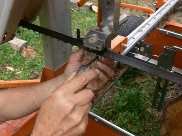 О чем вы должны позаботиться, так это о выборе режущего инструмента. В нашем случае используется ленточная пила, потому, собственно, оборудование так и называется. Её ширина может достигать 60 мм. Натягивается она посредством пружинно-винтового механизма, что очень удобно, так как это не занимает много времени. Пильная лента устанавливается и фиксируется двумя замками. Они должны быть крайне надежными, обратите на это внимание, если собираетесь изготавливать самодельные ленточные пилорамы. Своими руками такие замки делать не стоит, лучше купить.