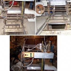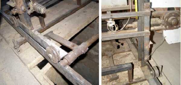 Для сборки станка были взяты старые шкивы, примерно 30 см диаметром, демонтированные с комбайна «Нива». Направляющие пилорамы были изготовлены из труб двух видов: диаметром полдюйма и второй, чуть большего диаметра, такого, чтобы легко надевались на полудюймовую трубу с миллиметровым зазором.