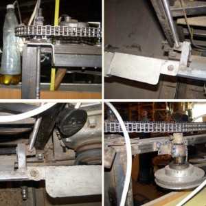 Так как для перемещения тележки с двигателем используется цепь, то нужно обеспечить её достаточное натяжение. Это необходимо для исключения свободного хода штурвала. Он находится на одной из втулок около звездочек, которые стоят на краях направляющих.