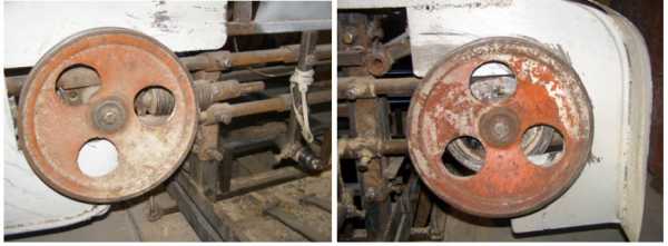 - В качестве подвижного шкива, служащего для регулировки размеров получаемого материала, традиционно используется правый, натяжение которого должно обеспечиваться пружиной.