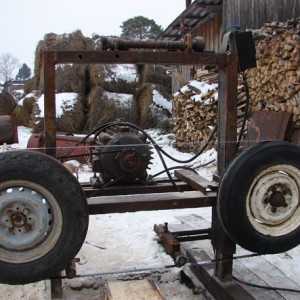 Это вполне реально сделать и вы получите надежную конструкцию, позволяющую распиливать ствол дерева на отдельные доски трехметровой и более длины. Вам понадобятся некоторые материалы (сортовой прокат и детали старых машин), а также провести слесарные, сварочные и токарные работы. Все было спланированы так, чтобы свести к минимуму необходимость в токарных работах.