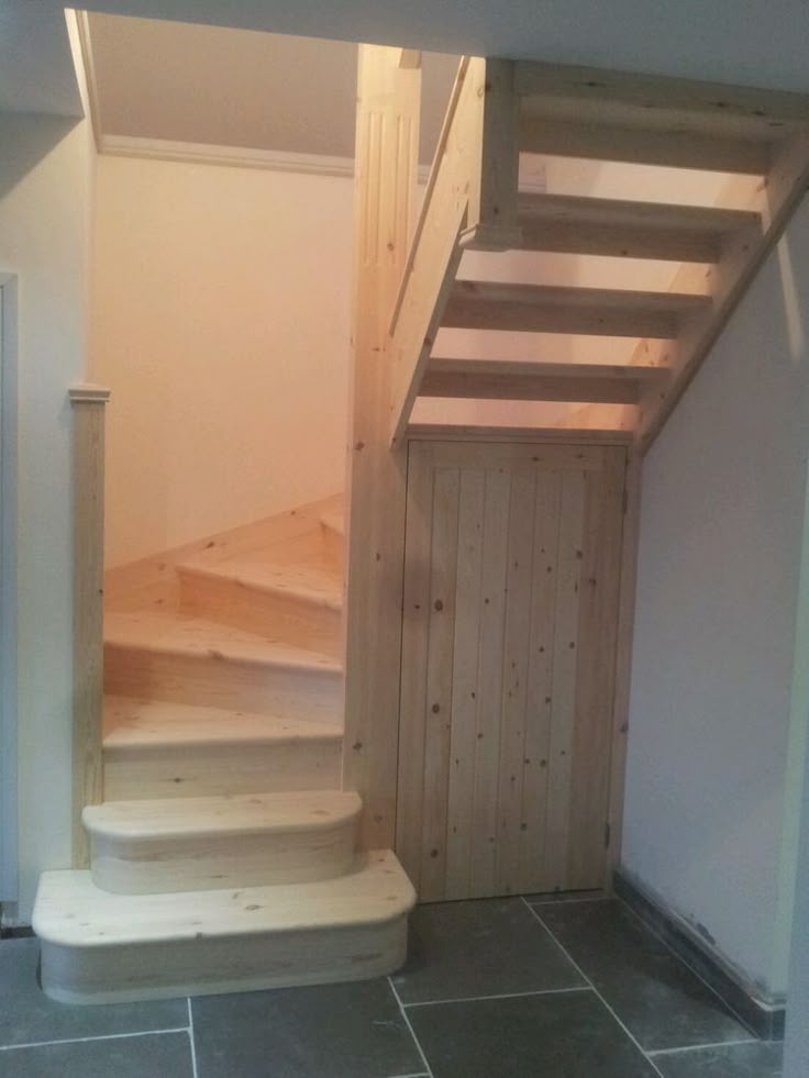 1) Сначала установите плинтуса на место, затем используйте приспособление, чтобы вырезать ступени и подступенки, чтобы они точно вписывались в пространство и впритык к плинтусу, надеюсь, без зазоров.