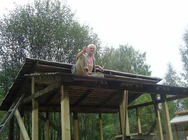 Последний этап – крыша. Она может быть плоской, односкатной или двускатной. Первый вариант проще и дешевле, второй – более надежен и долговечен. Не забудьте сделать удлиненный козырек, чтобы защитить стены от дождя.