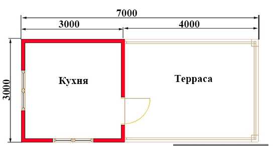 Если кухня будет использоваться и в более холодное время, то следует предусмотреть в стенах слой утеплителя пенополистирола или минеральной ваты.