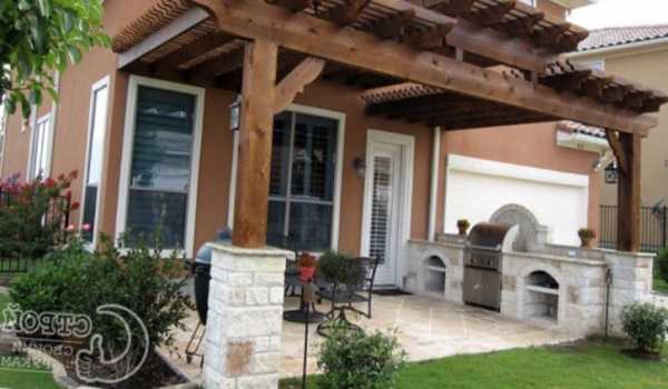 В зависимости от пожелания хозяев, летняя кухня открытого типа может быть отдельно стоящей или пристроенной к дому. Во втором случае это открытая терраса с ограждениями-парапетами.