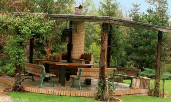 Стиль оформления открытой постройки будет диктовать ландшафтный дизайн. Если на территории есть бассейн или другой водоем, лучше разместить зону отдыха с мангалом неподалеку или вписать ее в общий ансамбль.