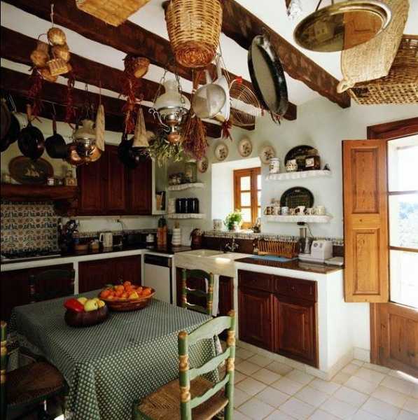 Дизайнеры рекомендуют оформлять кухню в не слишком ярких тонах — дизайн должен располагать к отдыху и общению с природой. Подходят песочные тона, цвета натурального дерева, светло-зеленый и другие пастельные оттенки. Также с помощью цвета можно визуально расширить или уменьшить помещение. Маленькие кухни, отделанные в светлых тонах, кажутся больше.