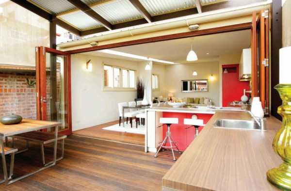 - можно организовать рядом и зону приготовления пищи, и обеденную зону, тогда хозяйке не придется бегать в дом с готовыми блюдами.