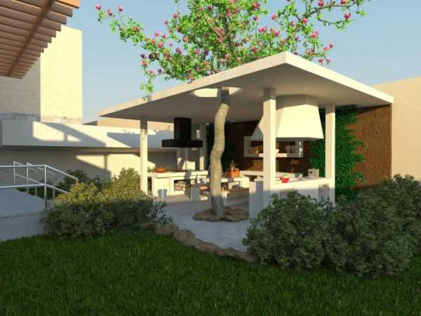 Если позволяет климат, можно сделать летнюю кухню под открытым небом — совсем без крыши. Но, как и открытая кухня с крышей, она должна быть связана с домом или иметь помещение, в которое можно убрать мебель и утварь для защиты от непогоды.
