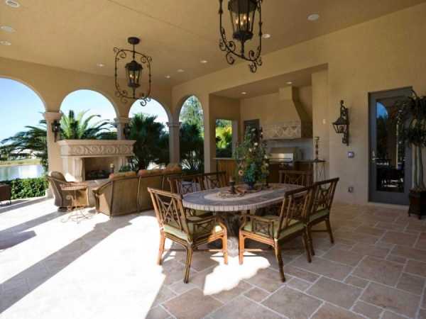 И завершающим этапом работ является отделка пола в летней кухне. Самый оптимальный вариант – это морозостойкая керамогранитная плитка. Лучше чем она, материал придумать будет сложно. Если на стадии изготовления фундамента вы позаботились о его ровной верхней поверхности, то самостоятельно уложить плитку будет несложно. Покончив с ней, летняя кухня своими руками может сдаваться в эксплуатацию – для этого придется пригласить друзей и организовать полноценный пикник.