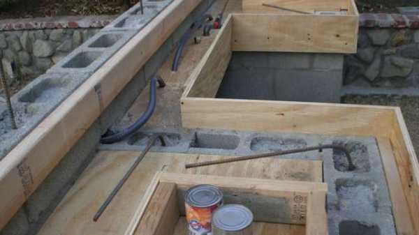 Ни о каких сложных конструкциях основания речь здесь не ведется – в большинстве случаев это мелкозаглубленный ленточный или плитный фундамент. В некоторых случаях используется их комбинированный вариант, что приносит довольно неплохие результаты – посредством такого основания решается сразу две задачи: вы получаете крепкий фундамент, а заодно и пол летней кухни. Как делается такой комбинированный фундамент? Достаточно просто для того, чтобы изготовить его самостоятельно. Для начала по периметру будущей летней кухни выкапывается траншея глубиной до полуметра и шириной около 30см. Потом по наружному краю траншеи устанавливается опалубка, в задачи которой входит придание фиксированной формы основанию в виде плиты. Все внутреннее пространство армируется, после чего заливается бетоном. Естественно, всем этим видам работ предшествует ряд подготовительных мероприятий – часть грунта под будущей плитой должна быть изъята, а вместо нее выполнена подсыпка сначала песком, а потом и щебнем. Все должно качественно утрамбовываться. После застывания бетона (как правило, спустя пару недель) работы можно будет продолжить.