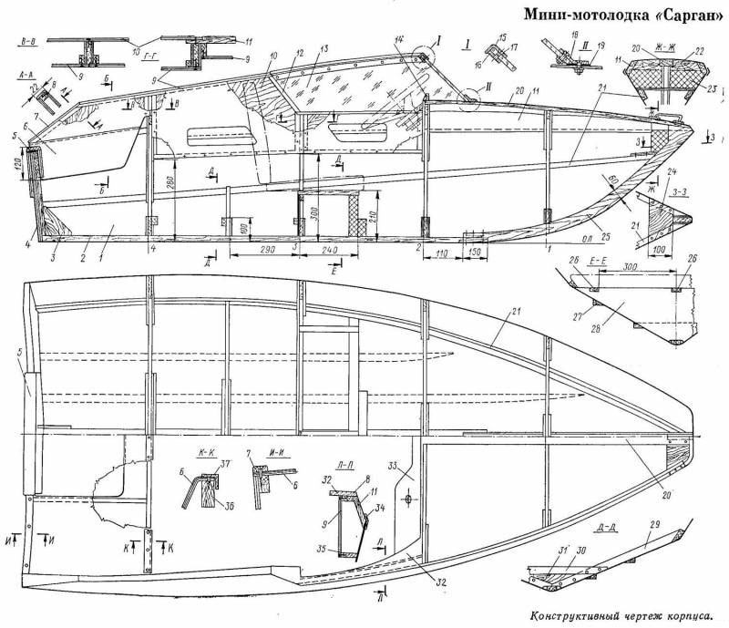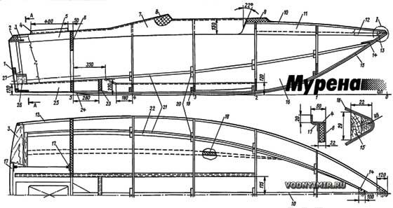 - После того как мастер создаст проект и чертеж будущей лодки, по указанной ранее схеме нужно создать модель конструкции из фанеры.