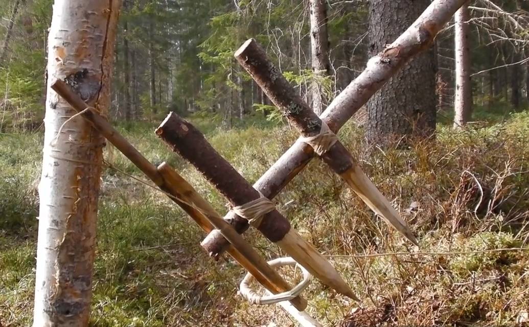 Хотя на видео ниже показана ловушка, которая не обманет ни одного охотника-собирателя на ходу, она наверняка заставит более крупное животное покалечиться, если оно попадет в ловушку растяжки и проткнется заостренным деревом.