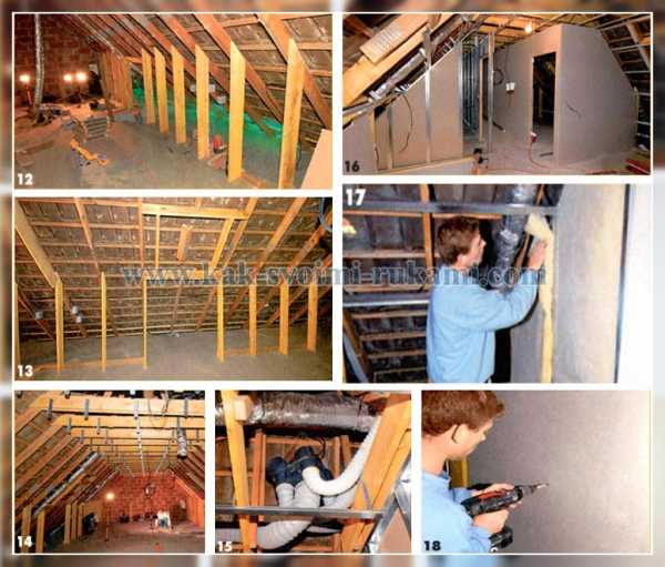 вы увидите материал об отделке мансарды. Авторы рассказывают не только об утеплении скатов крыши, которые одновременно являются стенами мансардного помещения, но и о разных вариантах внутренней отделки мансарды гипсокартоном, вагонкой, и даже о строительстве межкомнатных перегородок из дерева или швеллера.