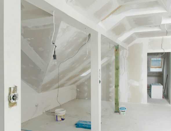 Если необходимо, то в мансарде монтируют перегородки, чаще всего из гипсокартона или ОСБ. Делают их звуконепроницаемыми, каркасного типа. Крепятся перегородки к полу, стенам и потолку. Если перекрытия железобетонные, то можно перегородки сделать из пенобетона или кирпича. Это приведет к удорожанию ремонта, но при этом даст небольшой эффект.
