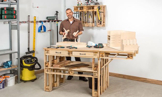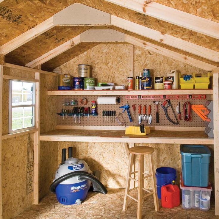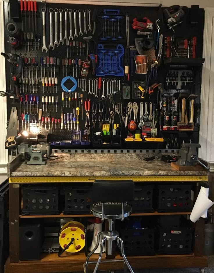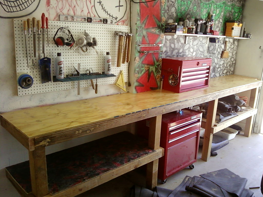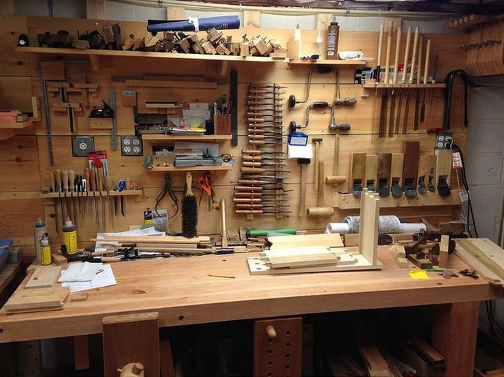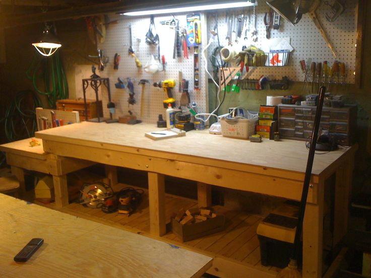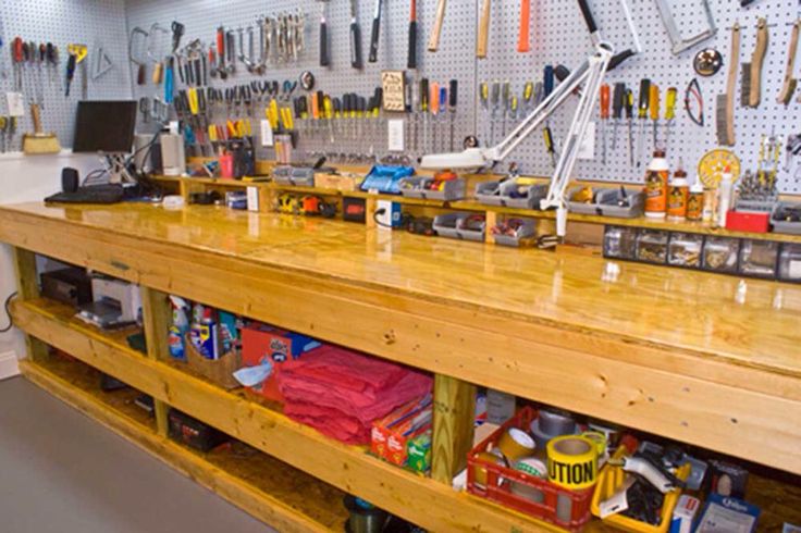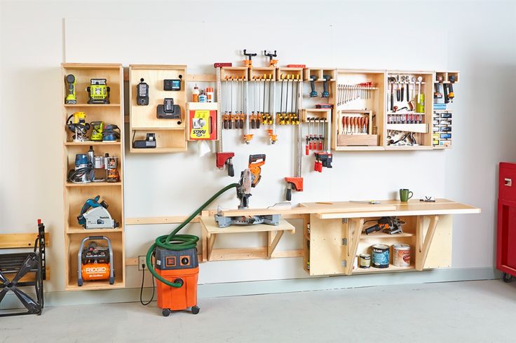 Если рабочая зона будет одновременно использоваться под другие нужды, подумайте о складном верстаке и настенном щите для инструментов. В ограниченном пространстве более полезен будет настенный верстак или верстак, под которым устроено место для хранения различных предметов.