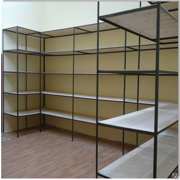 2 см. Если вы планируете хранить тяжелые предметы, то размеры должны быть 2*4 см или 2*5 см. Полки могут быть сделаны из ДСП, фанеры, досок, для очень тяжелых предметов из рифленого железа. Под предметы больших размеров будет достаточно настила из древесных брусков или прутьев арматуры с промежутками.