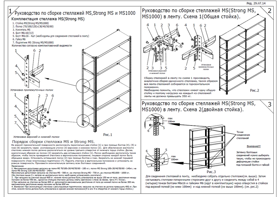 Обратите внимание, что со сборкой каркаса на болтах порядок следующий – сначала собирают отдельно квадраты полок и боковин, после все вместе скручивают. На каждое соединение лучше всего иметь не меньше двух болтов для хорошей жесткости.