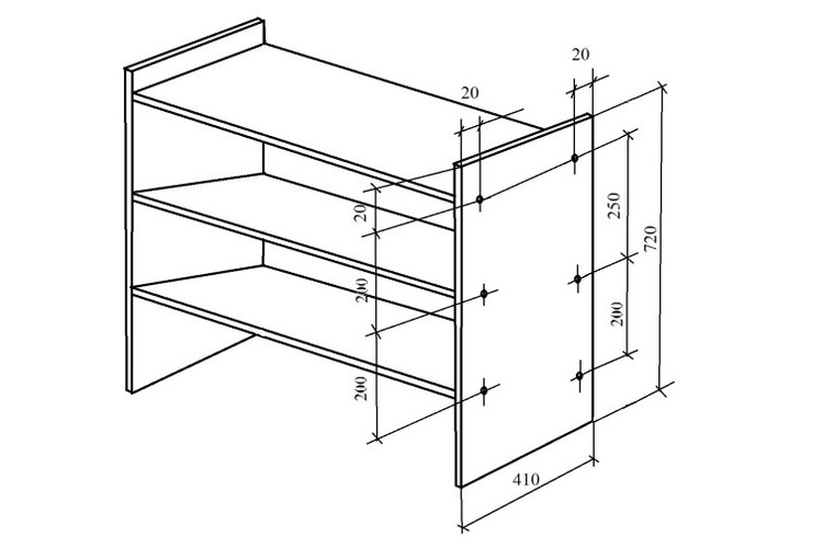 После определения высоты на них следует сделать отгибы и прикрутить саморезами. - В конце, когда проведен замер, можно сделать полки. Для улучшения характеристик жесткости по углам сделайте вырезы, чтобы они могли заходить даже на боковые поперечины. Для крепления древесины лучше всего использовать саморезы с мелкой резьбой.