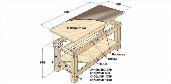 Сначала немного о размерах. Считается удобным, если ваш верстак будет длиной около 200 см, шириной от 80 – 100 см, и высотой 70-80 см. Исходя из этих размеров, мы и будем подбирать материалы.