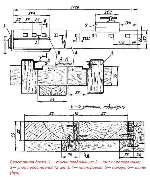 Тиски – это самый необходимый элемент на верстаке. У кого уже имеются заводские тиски, устанавливает их на верстак. Простейшие тиски можно изготовить и самому. Порядок изготовления можно увидеть на рисунке.