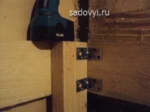 - Перфорированными крепежами скрепить ножки. Дополнительно соединить ножки с поперечинами можно саморезами с внутренней стороны.