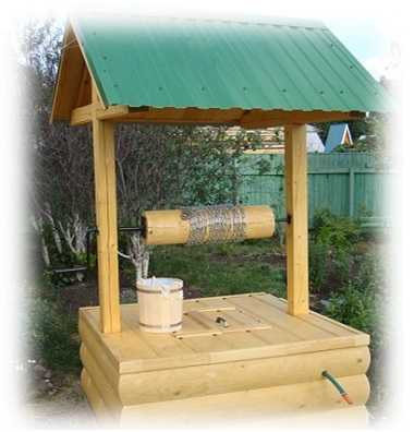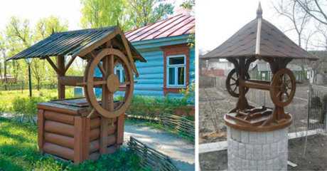 Крыша и домик служат дополнительной защитой от дождя и снега. Установка даже простейшего навеса способна предохранить колодезную крышку от намокания в дождь и продлить срок ее эксплуатации. Это не просто оригинальное украшение, а вполне функциональный элемент конструкции.