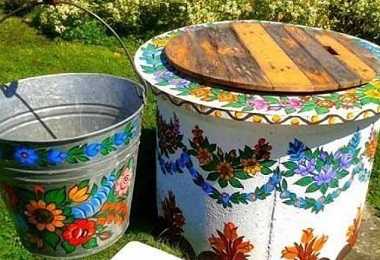 - Если же вы пользуетесь ведрами, в середине крышки вырезают отверстие с откидным люком.
