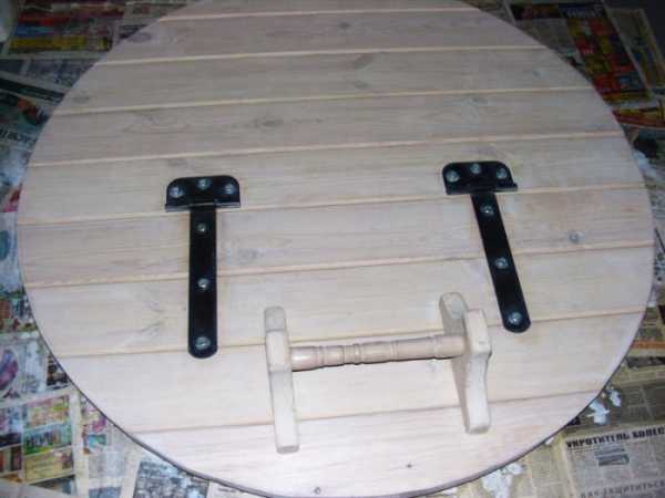 - На верхней крышке прикручивают деревянные или металлические ручки.