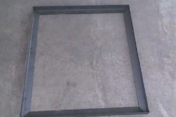 - Изготовление неподвижной рамы. Четыре отрезка уголка приварить между собой таким образом, чтобы получился четырёхугольник. Размер его должен позволять вписать внешний диаметр горловины колодца.
