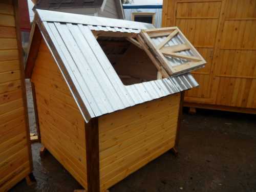 В этом случае есть где разыграться фантазии. Стилизовать крышку можно под имеющиеся строения. Например, обить её блок-хаузом или кровельным материалом, повторяющим кровлю основного здания, украсить декоративными элементами. С одной стороны двускатной крыши обязательно предусмотреть открывающуюся дверцу. Она может быть одно — или двустворчатой.