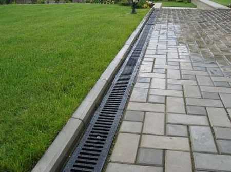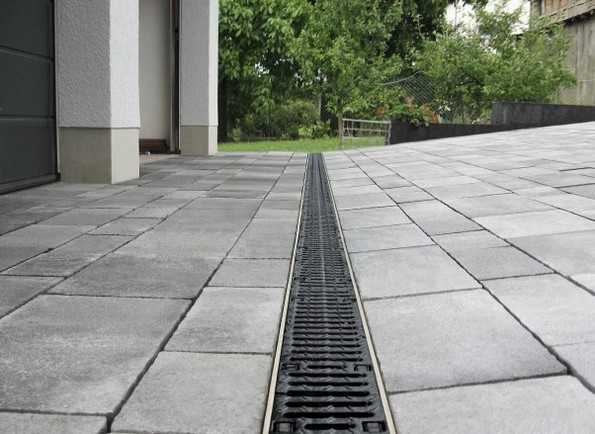 - полимербетонные/полимерпесчаные или пластиковые лотки, по которым вода будет стекать в отведенные ей места;