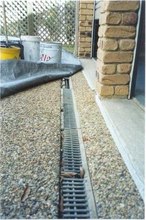 - Линейный дренаж. Это система подготовленных канав, направленных под определенным углом в сливную яму. Сверху эти канавы защищены решетками для безопасности домашних животных и человека. Достаточно часто, несмотря на предохранительные решетки, каналы линейного дренажа приходится чистить от листьев и песка, которые туда попадают. Линейный дренаж также может сочетаться с точками, которые могут использоваться в любых сочетаниях. Сочетание линейного дренажа с глубинным дренажем производит наибольший эффект суммации, и может использоваться для дренирования даже сильно заболоченных почв.