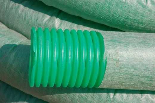 - Подготовить дренажные трубы: вспомогательные диаметром 75 мм и основные, диаметр которых 100 мм. Лучше всего выбирать пластиковые гофрированные и перфорированные трубы. Если на вашем участке суглинистая или песчаная почва, то трубы нужно обмотать геотекстилем. Это защитит от забивания и заиливания дренажных отверстий. Выгоднее покупать уже обмотанные трубы. Это несколько дороже, но при этом не нужно приобретать геотекстиль отдельно и тратить время на обмотку. К тому же без определенных навыков сделать это не так просто, как кажется на первый взгляд.