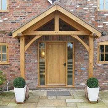 Массивные деревянные навесы поддерживаются при помощи опорных стоек. Их количество зависит от веса и размера конструкции. Для установки опор в земле выкапываются ямы, стойки опускаются в них и заливаются цементным раствором. Они будут поддерживать тяжелые козырьки над вашей дверью, беря на себя всю основную нагрузку.