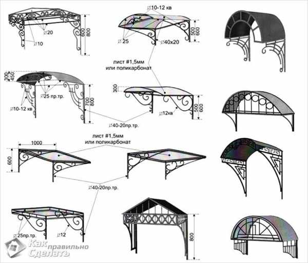 Они могут быть выполнены из самых разных материалов. Чаще всего козырек над дверью или калиткой изготавливают из: