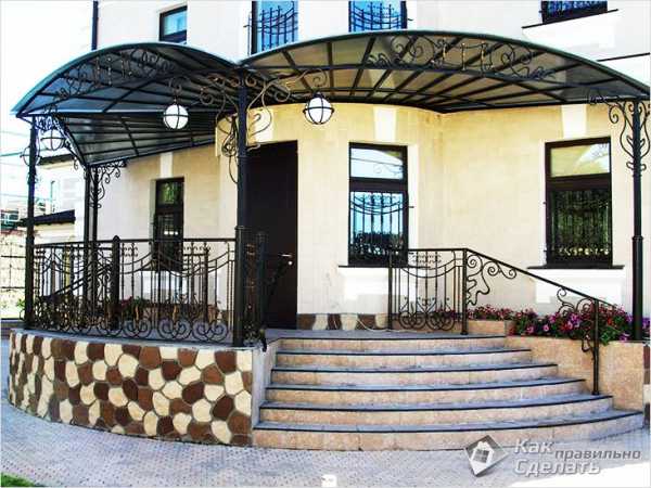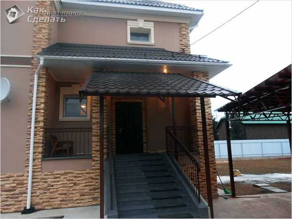 - красивый навес придаст фасаду завершенность и шик, если выполнен качественно и сочетается по стилю с постройкой;