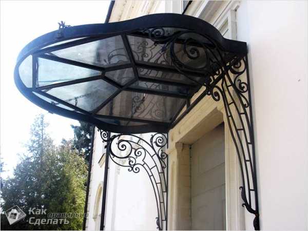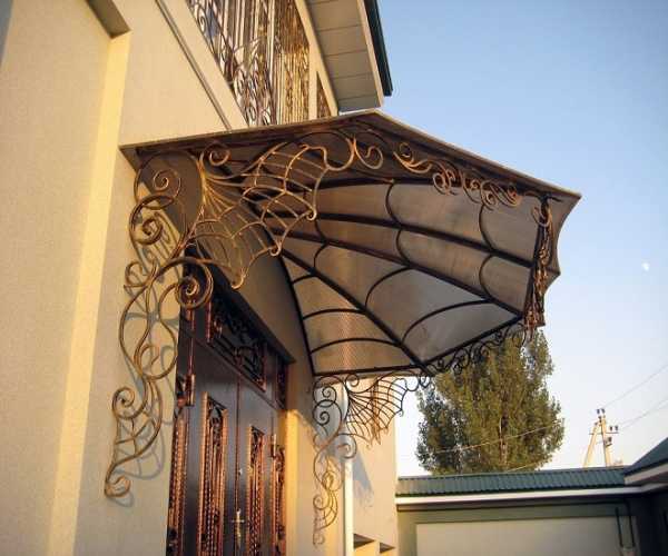 Какую форму и материал выбрать для изготовления козырька своими руками, зависит от материалов, используемых для отделки стен и кровли дома. Украсить навес можно, если использовать кованые элементы.