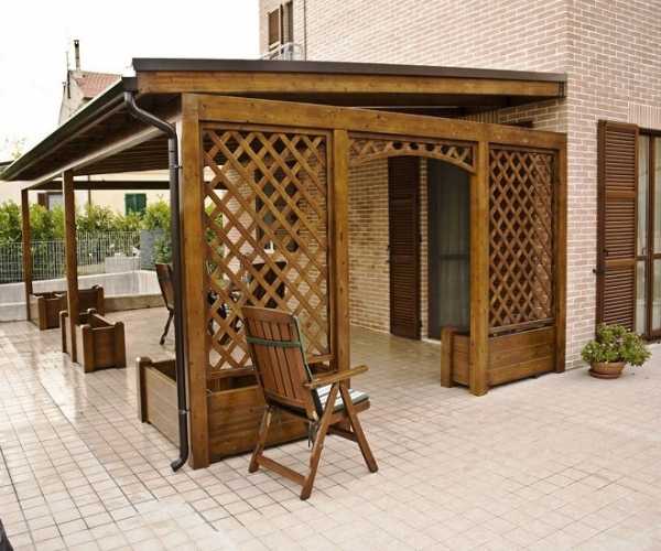 Односкатные обычно примыкают верхней частью к дому. Если вы хотите соорудить односкатный навес, то стену можно закрыть с одной или с обеих сторон, чтобы обеспечить максимальную ветрозащиту.