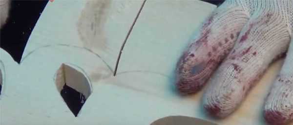 - Начиная справа или слева, делаем рез по намеченной линии. В процесс отпадают отпиленные кусочки, так что работать не слишком сложно.