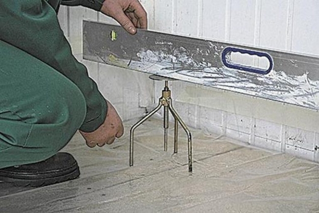 - Выставляется уровень заливки, который зависит от имеющихся искривлений. Наиболее быстро получается это сделать при помощи лазерного уровня.