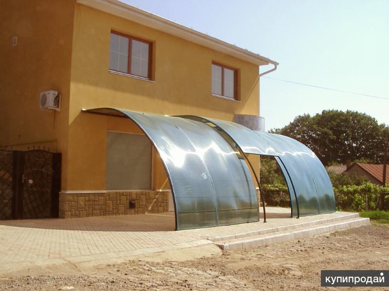 Есть немало фирм, специализирующихся на изготовлении навесов с прозрачным покрытием. Наиболее экономичный путь предполагает заказ у них готовых металлических конструкций, самостоятельную покупку листового поликарбоната и монтаж своими силами.