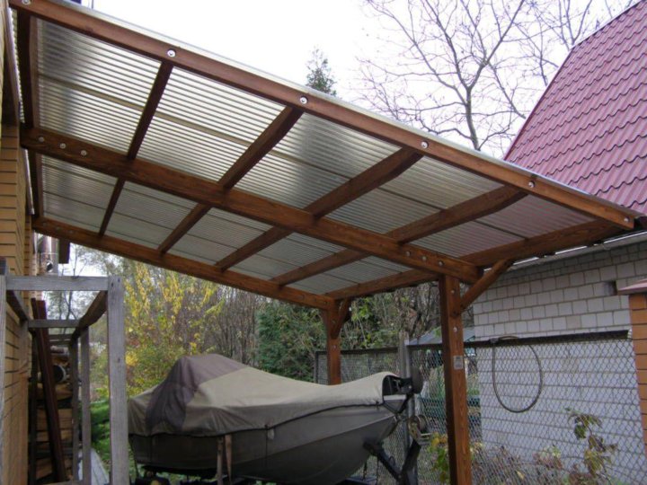 Деревянный навес к дому из поликарбоната своими руками: чертёж, строительство
