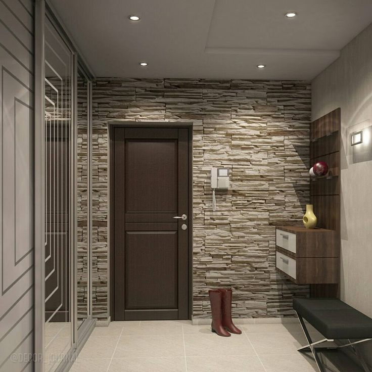 Отделка декоративным камнем набирает в последнее время всё большую популярность. Благодаря своей гладкой внутренней поверхности, он довольно легко монтируется и придаст вашей прихожей солидности и презентабельности.