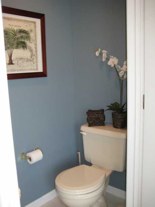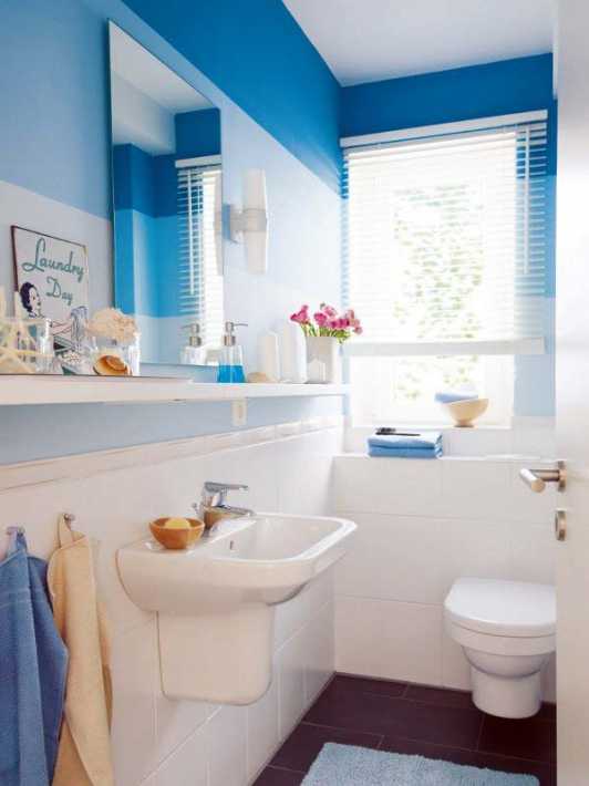 И последний совет: если вы хотите визуально увеличить площадь туалета, то положите на пол синюю плитку!