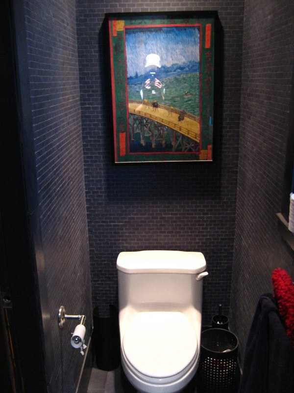 Несмотря на маленький размер туалета, здесь на стене нашлось место даже для картины.