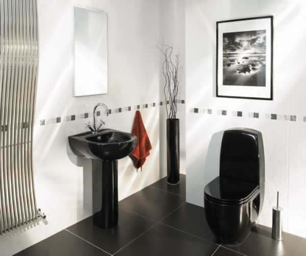 Нет, правда. В нынешние времена на рынке можно найти все что угодно. Так почему бы во время ремонта не подойти к выбору сантехники креативно? Черная коллекция сантехники выглядит необычно и сочетается с отделкой пространства. Интерьер также дополняет картина в черной рамке и эффектная ваза. Извилистые ветки в вазе похожи по форме с водонагревателем.