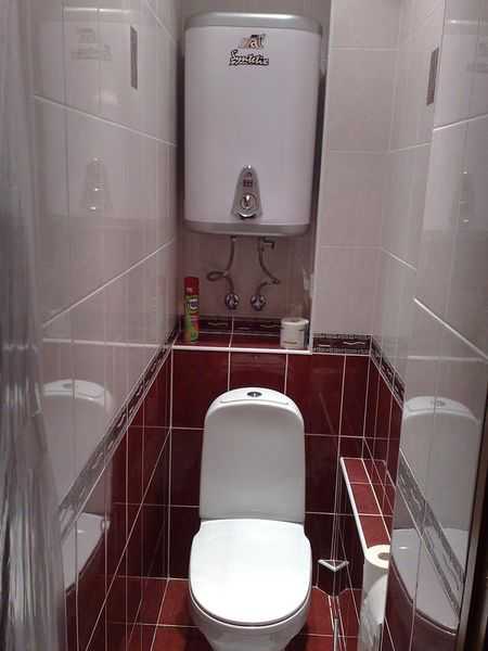 Несмотря на туалет маленького размера, часто в нем имеются ниши, которые отлично подходят для установки бойлера или обустройства шкафа.